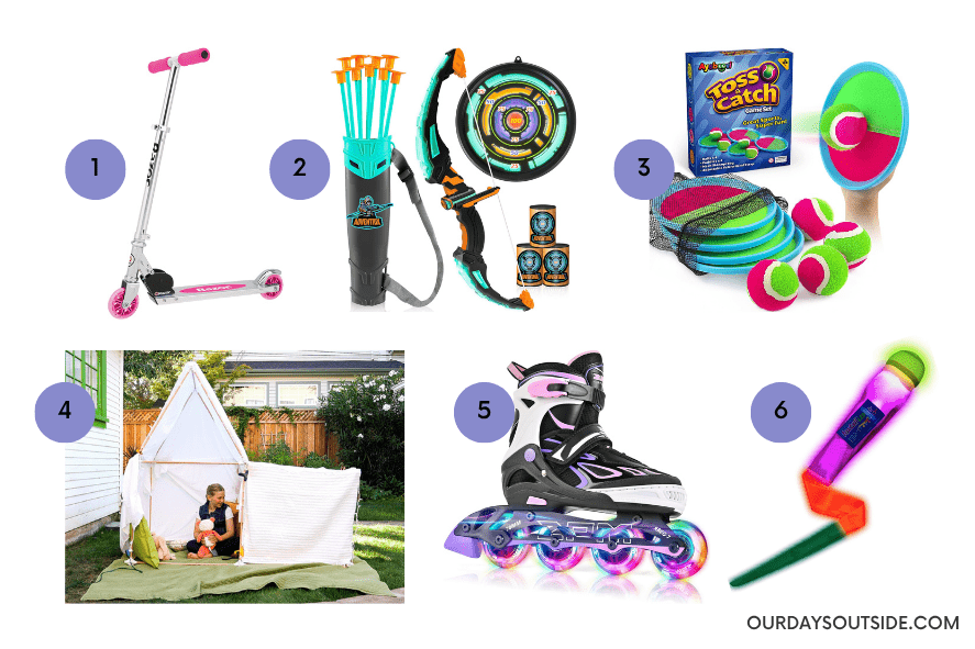 There you have it! If you’re tired of unused toys piling up inside, this is our tried and true list of kids outdoor gift ideas! They promote getting outside, being active, trying new hobbies, having adventures, and creating new experiences together! Thanks for reading and happy shopping!