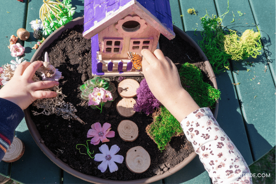 No matter the occasion, I know your kids will love creating their own whimsical container fairy garden as much as mine did! For more fairy activities, check out these nature fairy wings or these twig flower crowns!