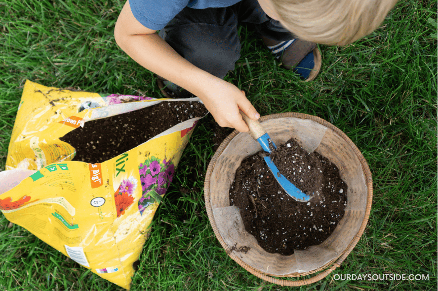 4. Fill container with dirt and plants.