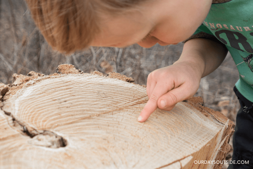Introduce kids to the science of tree rings with a hands-on approach. On your next hike (or even in your own yard or neighborhood) find a stump or a cross-section of a fallen tree and count the rings to estimate its age. This nature study idea teaches about growth patterns, drought years, and even local history. The tree rings can give clues about weather patterns and events from the past! Read more about tree ring studies and grab my free printables to use here!