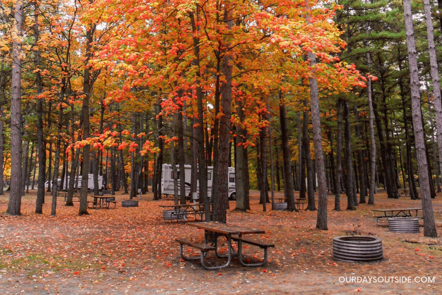 When it comes to activities in Traverse City, I couldn’t leave out camping! A lot of people may opt for the hotels and resorts, but there are plenty of nice areas for camping nearby if that’s your thing! This campground is located right off of the main drive that leads you into downtown Traverse City and is right across the street from Lake Michigan.