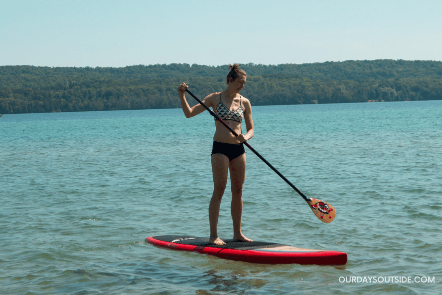 Paddle boarding is one of the activities in Traverse City that you have to try at least once! It’s such a unique experience to glide over the water while balancing upright on a board. And even if you don’t feel confident about standing or you want to try it with younger kids, you can always sit and paddle!