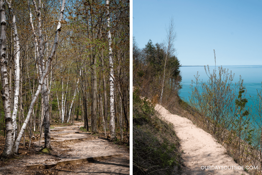 There are two loops you can choose from on this one, each about 2.5 miles long. You’ll hike through forest and end on top of some dunes with views of Lake Michigan below. This is one we still have yet to try, but I’ve been told that even though these loops are longer, the hike is a little easier.