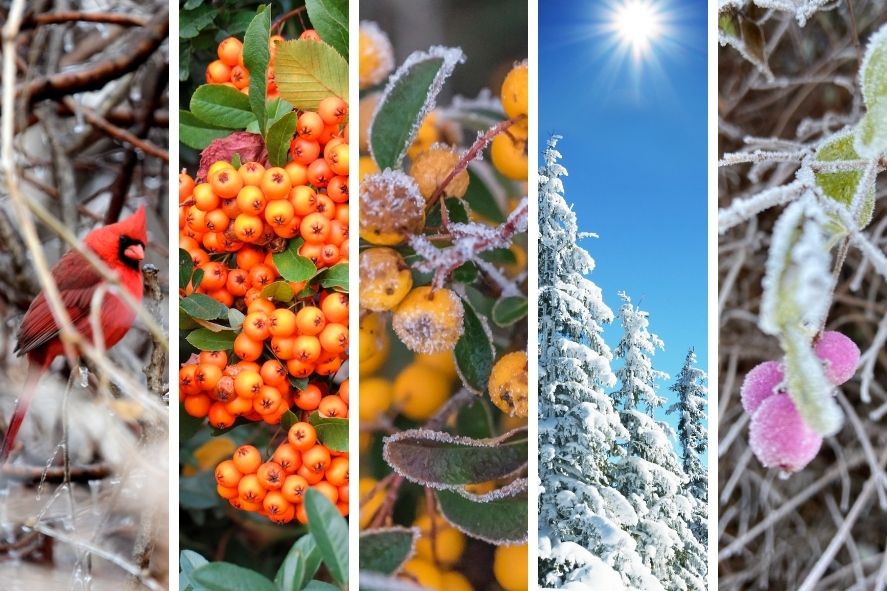 Nature scavenger hunt findings in winter include evergreen branches, berries, and pine cones.
