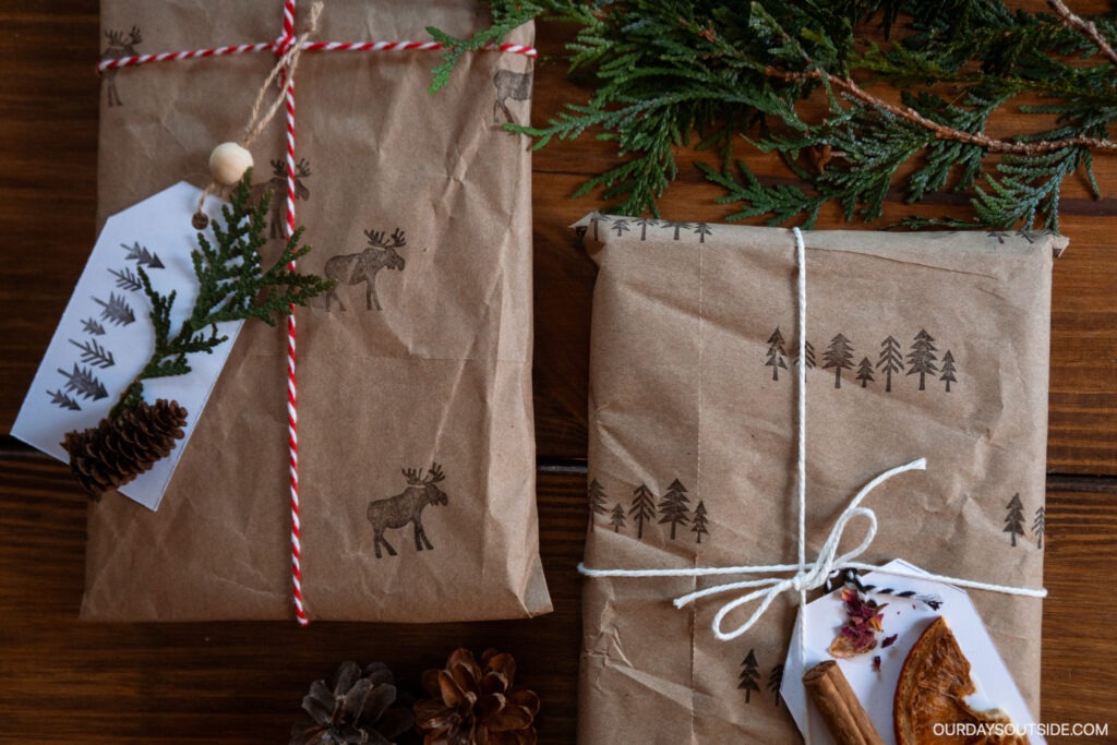 I don’t know about you, but we get a ton of brown paper from our deliveries over the course of the year. Definitely enough to wrap all our presents on Christmas and birthdays, so I always set it aside to use when needed! I always liked the look of brown paper packages anyway, and after we dress them up with our other gift wrapping ideas, they’ll be perfectly festive!