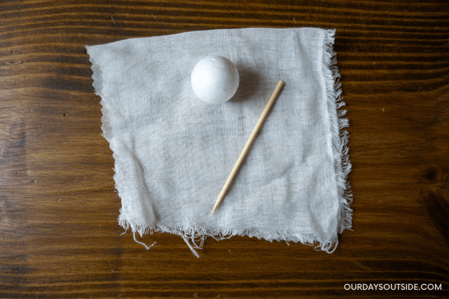 For an extra seasonal twist, make a friendly ghost! Skewer the foam ball with a stick, drape it with cheesecloth, and tie it beneath the ball with white thread. You can “plant” the stick into your base so it floats nearby.