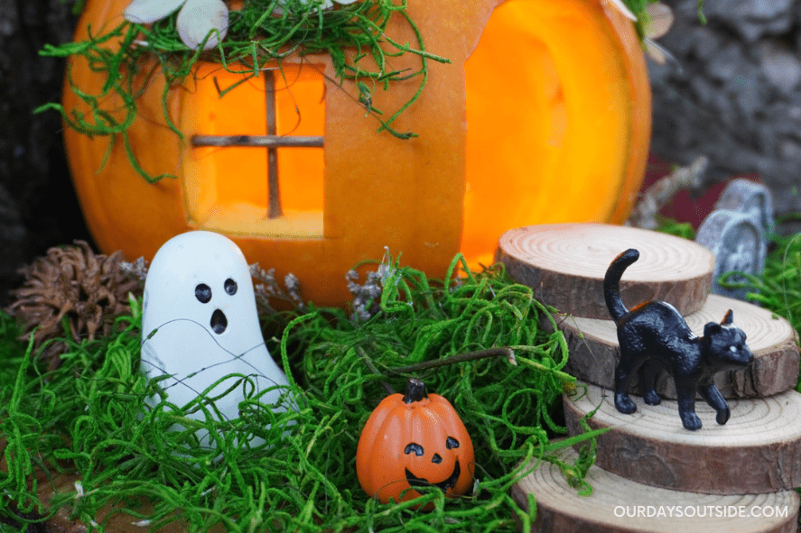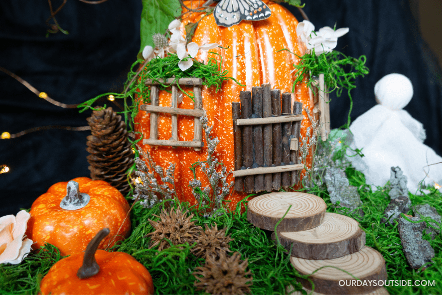 5. Don’t forget to add lights to your pumpkin fairy house!