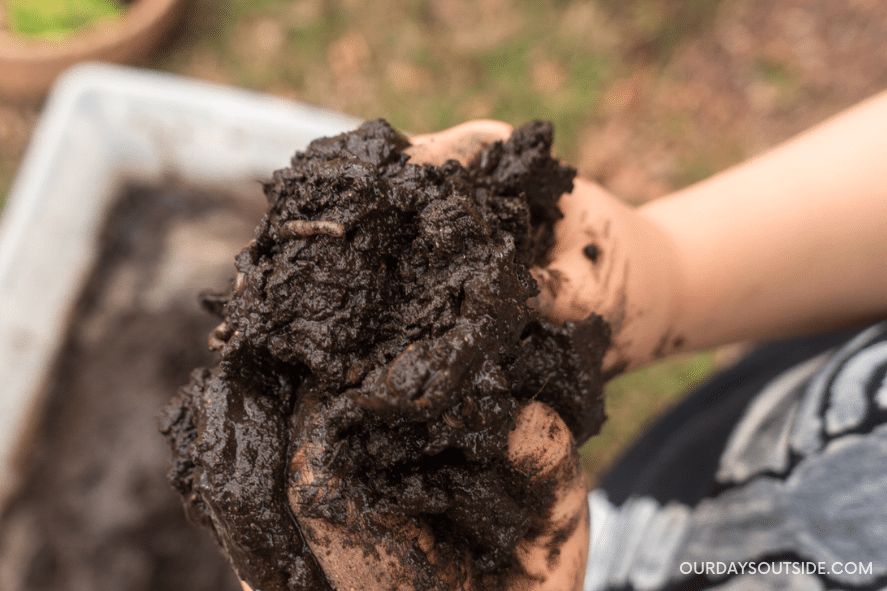 Kids always seem to have fun digging up these plump little guys! My son also had fun keeping some worms in his own container as “pets” for a few days.