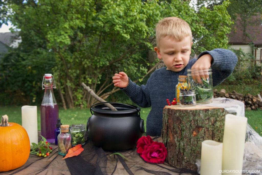 Did anyone else do this as a kid? Dressing up and acting out a story line is such a great way for kids to showcase some creativity! Outdoor activities for kids like this one can really allow for some great imaginative play!