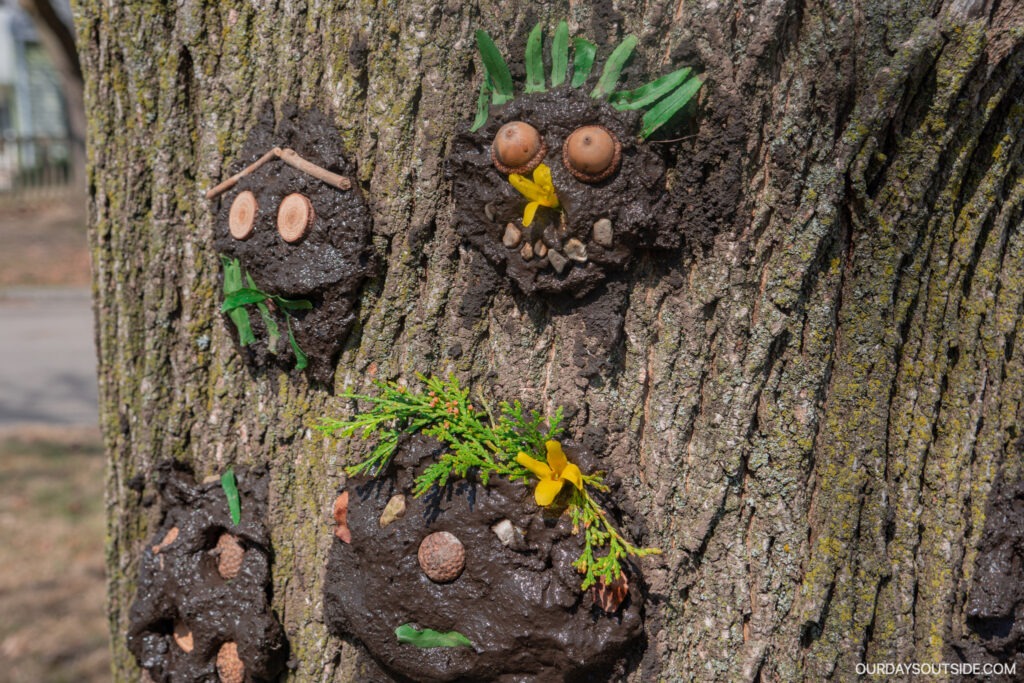 21. Make mud faces on trees.