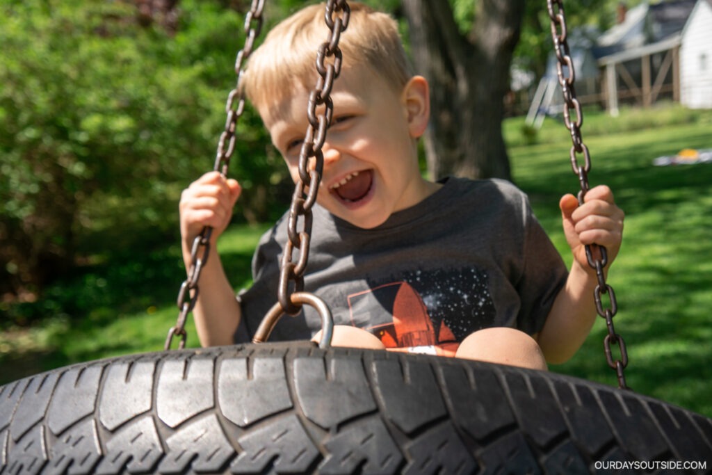 Swinging is obviously one of the classic outdoor activities for kids! We replaced our old tire swing with this one.
