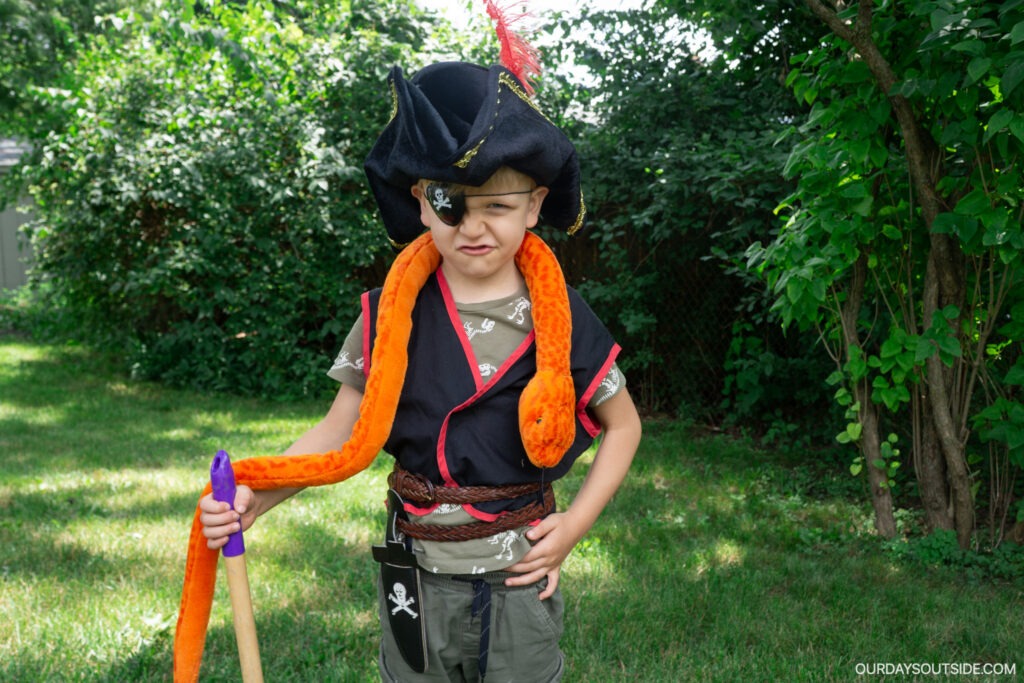 If you have any pirate garb or props, have the kids grab those before heading out! Try hats, bandannas, eye patches, swords, telescopes, etc. And every good pirate captain has an exotic pet monkey, parrot, or snake! Getting dressed up and in character can be half the fun. I have fond memories role playing as a kid and I think it’s a great imagination stimulant for our kids!