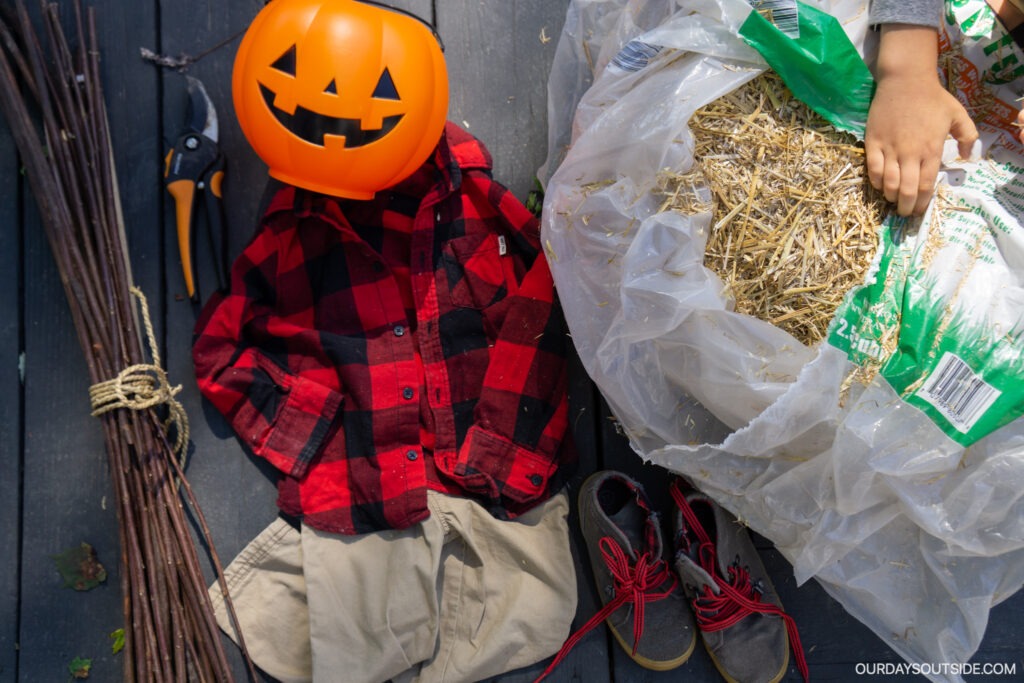 1. Gather supplies for your DIY scarecrow!