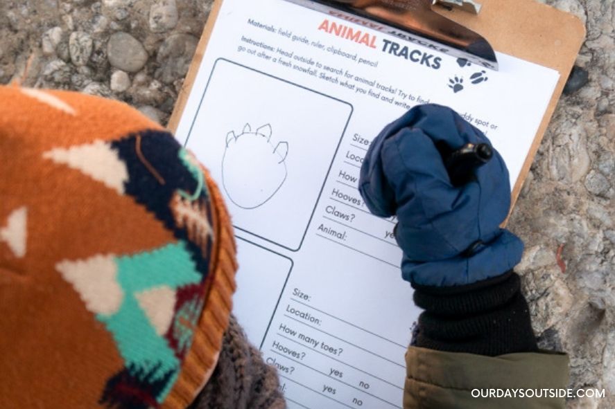 I was surprised to learn just how many signs are all around us that completely escaped my notice until I started to look for them! If you find yourself wanting even more animal tracks activities, here’s a blog post of 5 interactive ways to study animal tracks with kids.